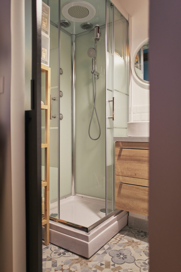 Dans cette ambiance intimiste et design, on retrouve un meuble vasque noir mat. Pour vous faciliter le quotidien, il dispose […]