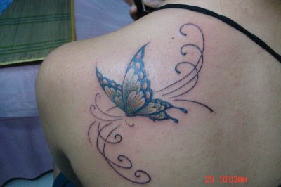 Butterfly Tattoos On Upper Back For Girl | Tribal Tattoo Idea