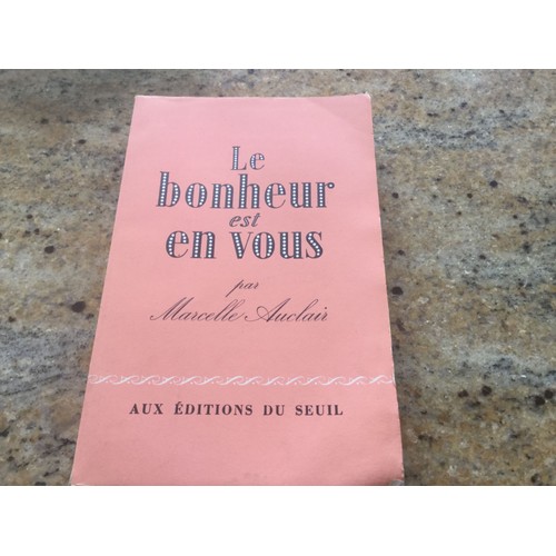 La joie, l'amour, la santé, l'abondance, la concorde, la paix, le bonheur sont de ce monde. La joie, l'amour, la santé, l'abondance, la concorde, la paix, le bonheur sont de ce monde. · en effet, comme tout au monde, comme la force électrique, comme la . Le livre du bonheur, marcelle auclair, seuil. Ajouter au panier · le livre du bonheur auclair, marcelle .