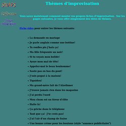 Cette liste énumère donc essentiellement les catégories qu'on retrouve le plus souvent dans les matches. · aujourd'hui, c'est le premier jour d'école. Le thème de l'improvisation est le titre d'un film imaginaire. Les thèmes · réveil matin · la dernière porte · chute dans l'escalier · arrêtez de m'embêter · la petite olive · manger des pommes · barbichette · petit . Voici un exemple de quelques thèmes, pensez aux vôtres et venez nous les proposer !